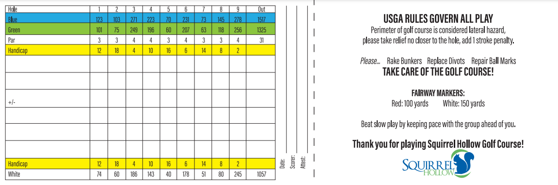Please note: The course is closed on Monday, Tuesday, Wednesday & Thursday evenings for league play – the latest golfers can tee-off is 4:00 p.m. – Thank you!